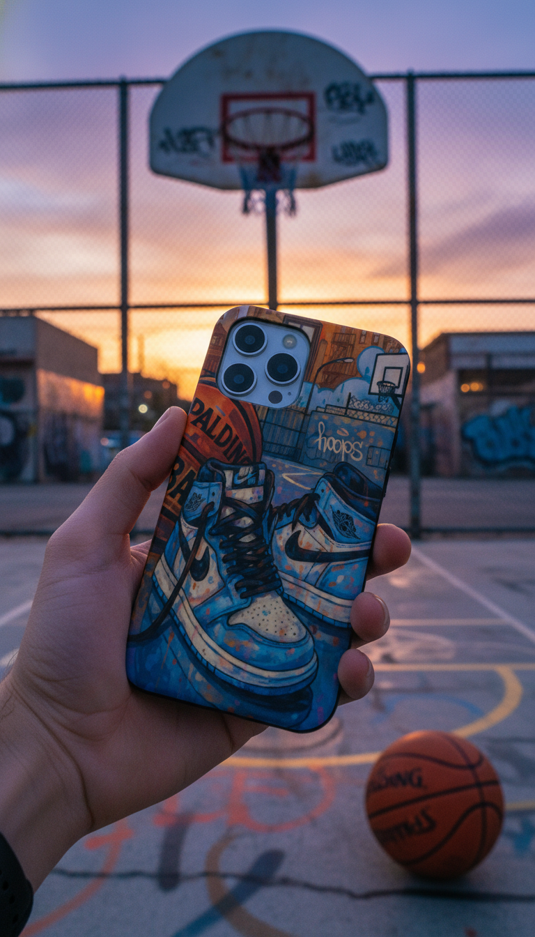 Phone case with star constellation design on a black background Phone case with text highlighting features on a white background