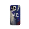 Phone case with 'AUS' and airplane design on a white background