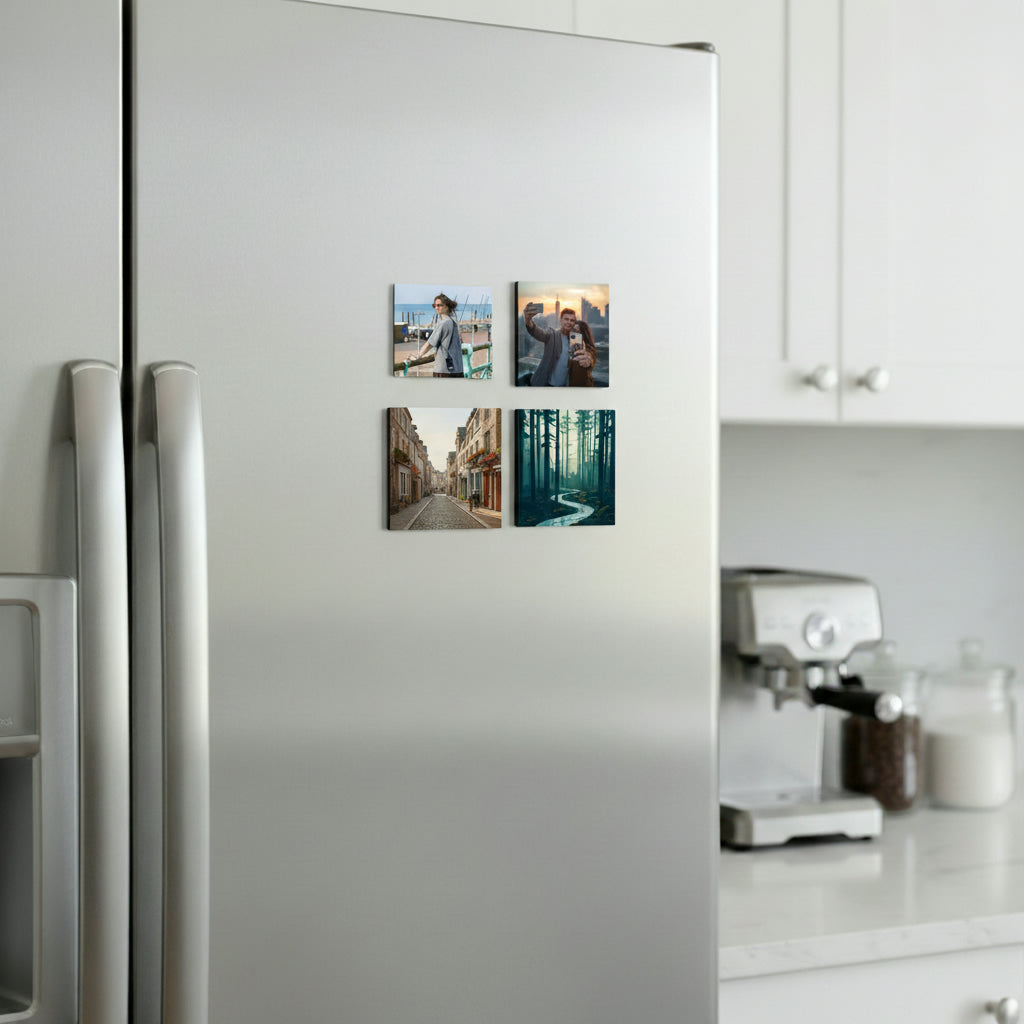 Our custom acrylic photo fridge magnets use high-definition UV printing on clear acrylic to showcase your photos with crisp details and a glossy, glass-like finish.
