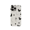 Phone case with black star pattern on white background, showing features like silicone inside and hard shell outside.
