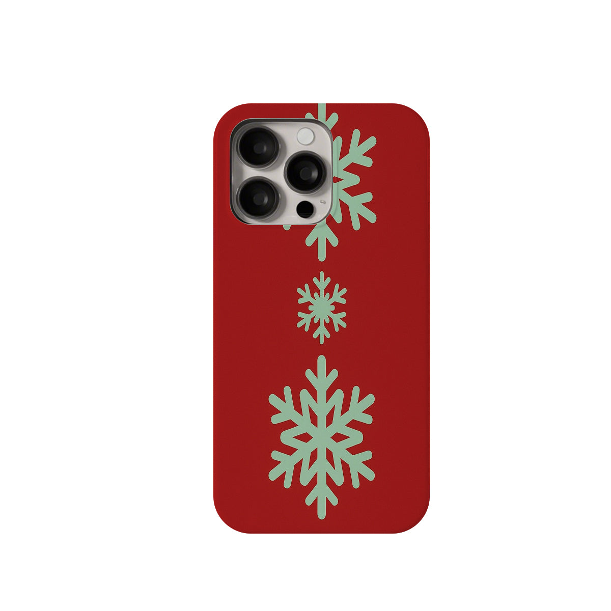 Phone case with white snowflakes on a pink background Phone case with floral design and text highlighting features on a white background